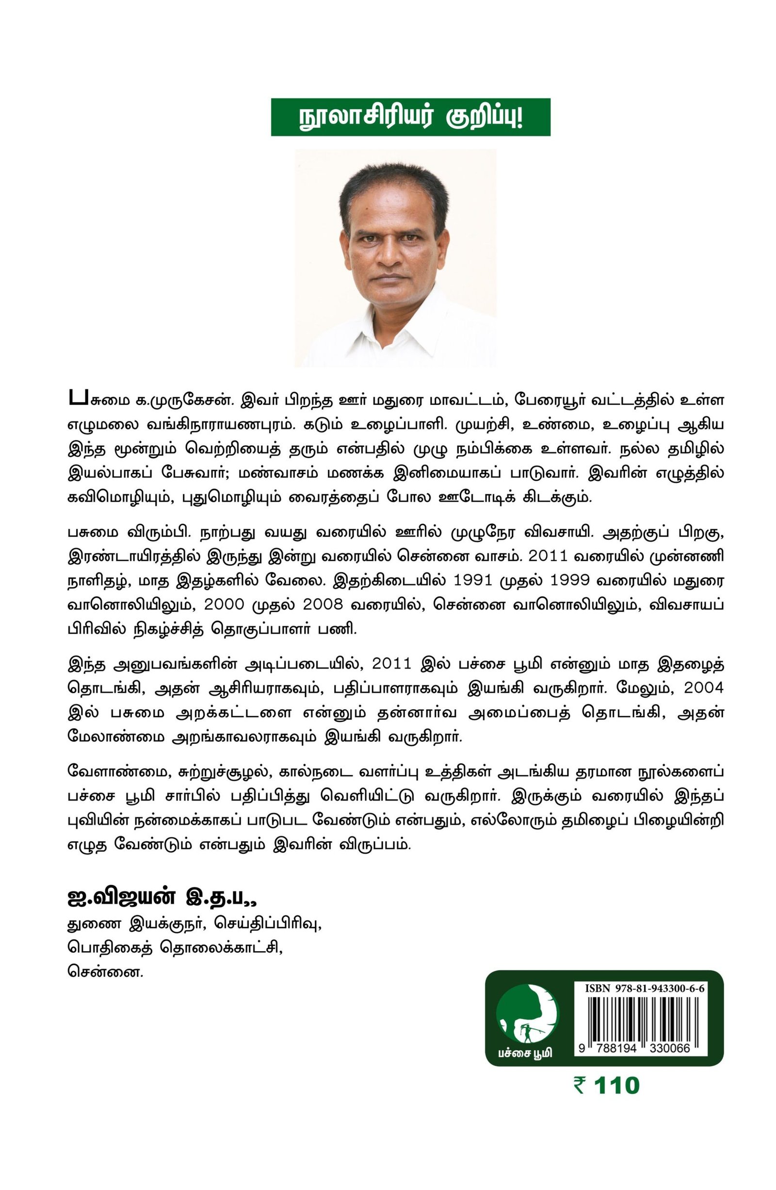 வேளாண்மை, சுற்றுச்சூழல், கால்நடை வளர்ப்பு உத்திகள் அடங்கிய தரமான நூல்களைப் பச்சை பூமி சார்பில் பதிப்பித்து வெளியிட்டு வருகிறார். இருக்கும் வரையில் இந்தப் புவியின் நன்மைக்காகப் பாடுபட வேண்டும் என்பதும், எல்லோரும் தமிழைப் பிழையின்றி எழுத வேண்டும் என்பதும் இவரின் விருப்பம்.